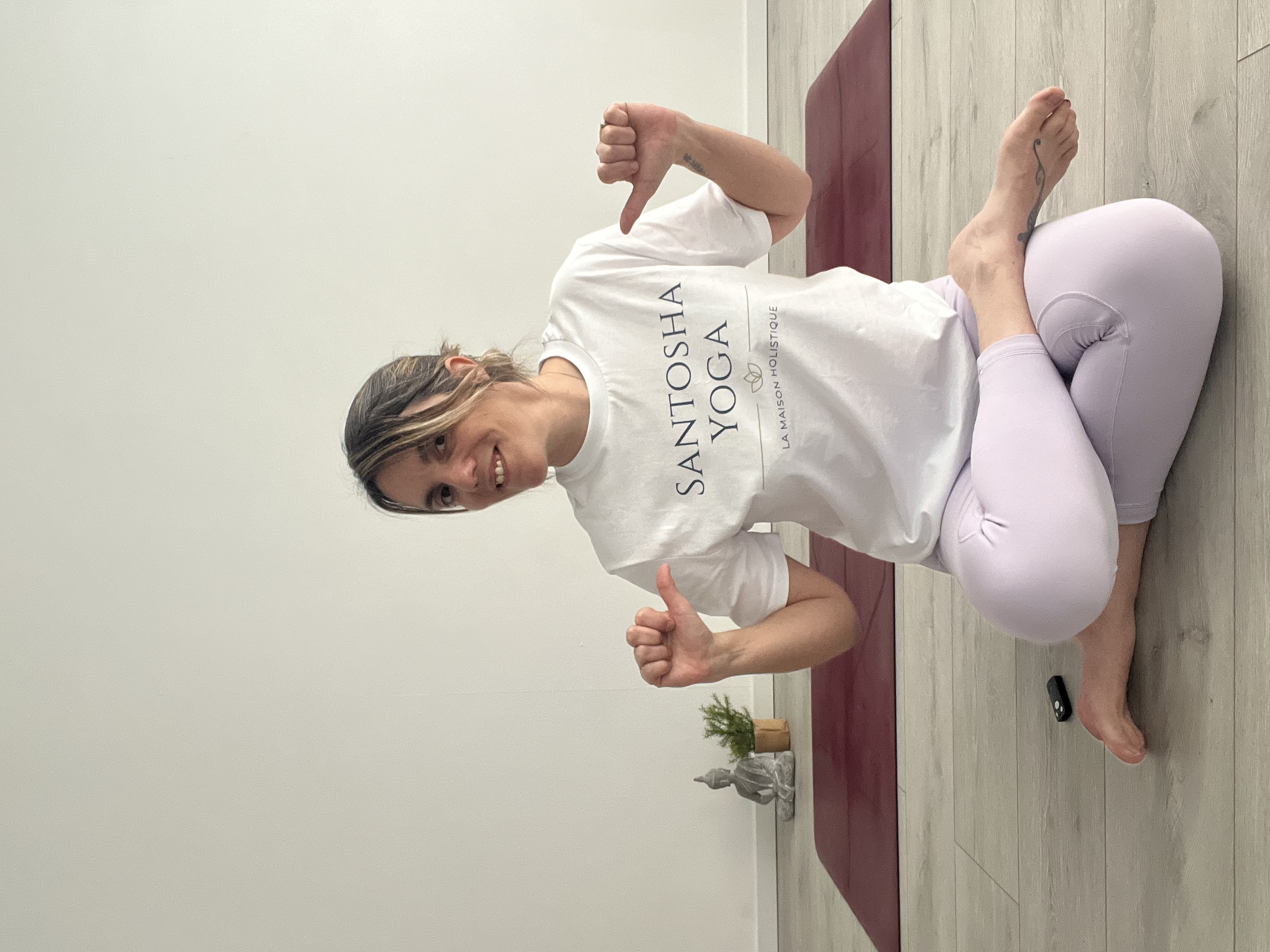 Découvre ici la première création de la marque " Santosha yoga la maison holistique" : la première édition du T shirt Original de Santosha yoga